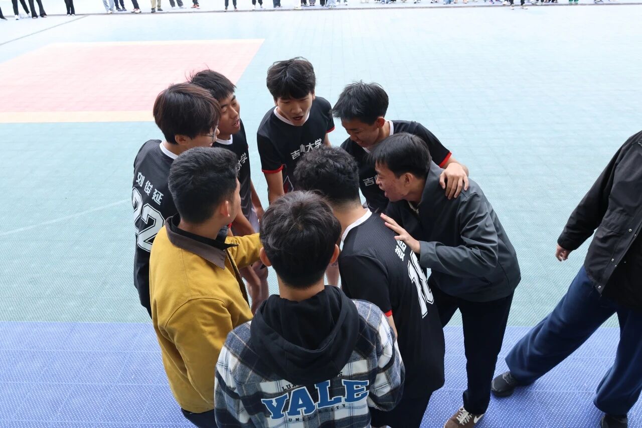 为保证比赛的公平公正与顺利进行,本次新生篮球赛特别邀请了体育学院的李鹏举老师和于雷老师担任裁判,学院男子篮球队队长向旭东担任副裁,陈志文教授为本场比赛开球。