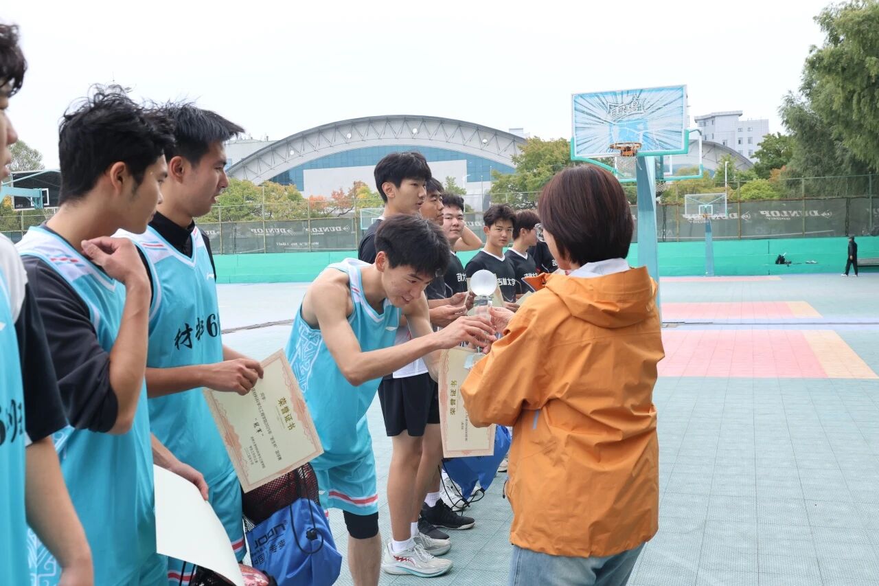 巅峰对决落幕,荣耀如期而至!终场哨响,比赛结束。最终162506班斩获冠军,162508班摘得亚军,两队精彩的比赛给“新生杯”篮球赛画上圆满句号。双方运动员与嘉宾合影,留存这段热血记忆;球员们握手相拥,致敬彼此的坚持与热爱。随后,华蕊书记、严冬老师、陈志文老师为两队颁发奖品和证书。