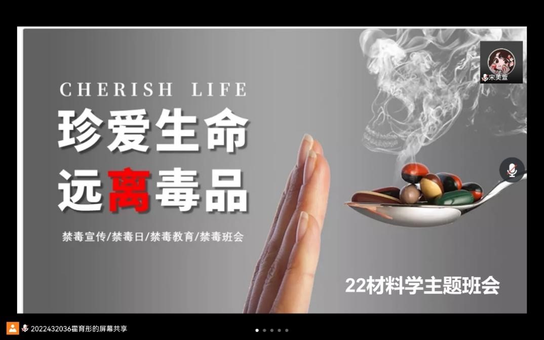 禁毒宣传教育工作向纵深发展,2022年11月7日,22级材料学研究生开展了“珍爱生命·远离毒品”宣传教育线上班会,引导同学们了解禁毒知识、认清毒品危害,自觉远离毒品,增强同学们防毒、拒毒的意识和能力,预防和减少学生涉毒违法犯罪,营造和谐校园。