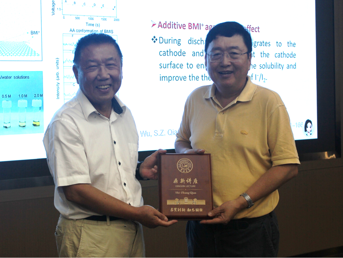 2025 年8月13日,澳大利亚科学院院士、澳大利亚阿德莱德大学纳米技术首席教授乔世璋做客性吧 鼎新讲座,带来了一场主题为《Materials Innovation for Energy Storage and Conversion》的精彩学术报告。讲座由性吧 崔小强教授邀请,蒋青教授主持并为乔世璋院士颁授鼎新讲座纪念牌。乔世璋院士的本次讲座聚焦绿色能源技术前沿,系统展示了研究团队在电催化海水制氢与先进电池领域取得的突破性进展。在绿色制氢方...